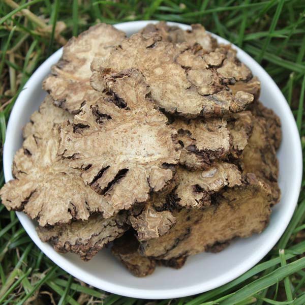 本品为伞形科植物川芎的干燥根茎。夏季当茎上的节盘显着突出,并略带紫色时采挖,除去泥沙,晒后炕干,再去须根。性味:辛,温。归经:归肝、胆、心包经。